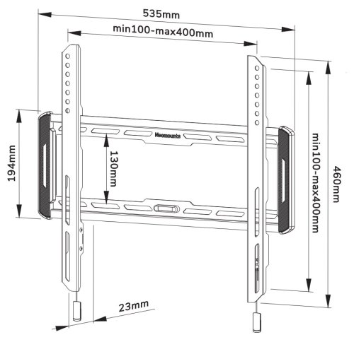 Fixný nástenný držiak pre ploché obrazovky s uhlopriečkou od 32" do 65" a nosnosťou až 60 kg . Tento ultraplochý držiak má hĺbku 2,3 cm a je vhodný pre obrazovky, ktoré zodpovedajú vzoru otvorov VESA 100 × 100 až 400 × 400 mm . K dispozícii je praktický magnetický systém pre vytiahnutie/uvoľnenie a integrovaná vodováha , ktorá zaisťuje jednoduchú inštaláciu.