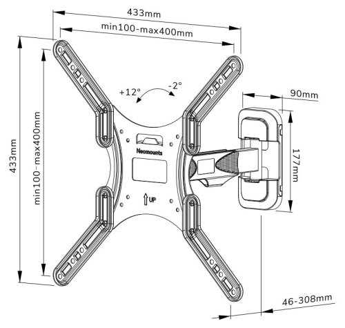 Plne pohyblivý nástenný držiak pre ploché obrazovky od 32" do 55" s maximálnou nosnosťou 35 kg . Všestranná technológia naklápania a otáčania umožňuje vytvoriť optimálny pozorovací uhol. Na dosiahnutie ideálnej inštalácie je možné držiak vyrovnať do vodorovnej polohy. Držiak má hĺbku 4,6 až 30,8 cm a je vhodný pre obrazovky, ktoré zodpovedajú vzoru otvorov VESA 100 × 100 až 400 × 400 mm.