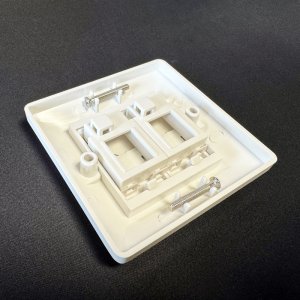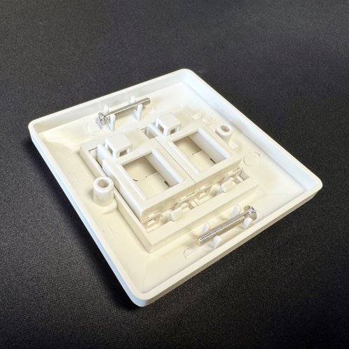 Vlastnosti: *Rozmery: 86 x 86 x 15 mm *Pre 2 štandardné keystone moduly *Protiprachové krytky pre ochranu konektorov *Montáž do prístrojovej krabice pod omietku (60 mm rozteč skrutiek) *Jednoduchá inštalácia pomocou priložených skrutiek *Dodávané bez keystone - vhodné pre keystone - vhodné pre keystone (vysoký lesk)