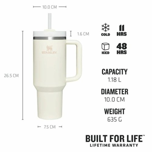 Nerezový termohrnček Quencher v krémovej farbe - must have, veľký, odolný, krásny, trendy, pre každú príležitosť, štýlový. Dobre uchopiteľný, jemný povrch, ponúka štýlový, sofistikovaný vzhľad a hrejivý, zamatový pocit. Napriek tomu ho možno umývať v umývačke riadu a má všetku odolnosť, na ktorú sa u značky Stanley 1913 môžete spoľahnúť. Pod jedinečným povrchom Soft Matte sa skrýva konštrukcia z recyklovanej nerezovej ocele a dvojstenná vákuová izolácia. V hornej časti sa nájdete patentové viečko FlowState™ s otočným krytom s tromi polohami: