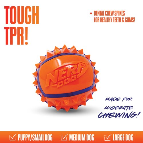 Hračka v tvare loptičky má približný priemer 9 cm a je určená pre aktívnu hru s vašim psom – či už ide o hádzanie, aportovanie alebo nosenie. Vyrobená je z termoplastickej gumy (TPR), ktorá je pružná, odolná a vhodná na pravidelné používanie. Povrch loptičky je pokrytý výstupkami, ktoré zlepšujú úchop psa aj majiteľa a zároveň pomáhajú pri čistení psích zubov počas hry. Hračka vyniká farebným kontrastným prevedením, vďaka ktorému je dobre viditeľná vo vonkajšom prostredí - na tráve, v parku či na piesku. Je vhodná pre malé až stredné plemená, ktoré majú radi hru aportovanie a aktívny pohyb.
