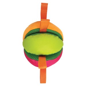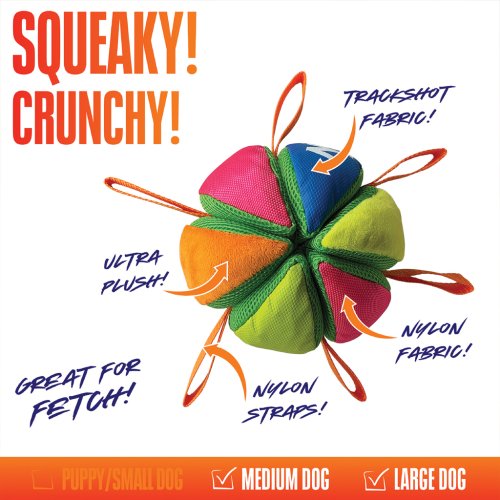 Pohodlné pútka na uchopenie: loptička je vybavená niekoľkými nylonovými popruhmi, takže je ideálna pre ťahanie a aportovanie. Vrecká na maškrty: špeciálne vrecká na maškrty dodávajú hraniu ďalšiu vrstvu zábavy a odmeny. Zvuk, ktorý povzbudzuje k hre: hračka kombinuje vŕzgavý a šuštiaci zvuk a vytvára vrstvy zvukov a textúr, ktoré udržia psy v strehu od prvého sústa až po posledný skok.