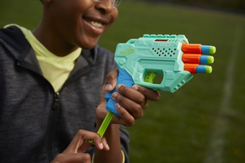 Strojnásobte svoju bojovú akciu s balíčkom NERF Elite 2.0 Tactical Pack, ktorý obsahuje 3 blastre a 20 penových šípok NERF Elite! Pustite sa do 2hlavňových výstrelov s blástrom Operator DB-2, ktorý vystreľuje 2 šípky za sebou, má 2šípkovú hlaveň, zaťahovaciu rukoväť, zameriavací ďalekohľad a pažbu. Pre odpaľovanie troch šípok siahnite po blástri Trio TD-3, ktorý vypustí 3 šípky za sebou, má 3 hlavne a taktickú lištu. Pripravte sa na to byť jednotkou v hre s blastrom Ace SD-1, ktorý vystreľuje 1 šípku, má sťahovaciu nabíjaciu rukoväť a integrovaný zásobník na 1 šípku. Tieto blástre sú zábavné a ľahko sa používajú, takže sa okamžite pustíte do hier NERF! Nabite, naplňte a stlačte spúšť - 3 jednoduché kroky, aby ste mohli začať hrať! Toto balenie 3 blastrov je skvelé pre fanúšikov NERF, ktorí chcú budovať svoje zbierky blastrov pre každú súťažnú výzvu. Je to skvelý darček pre každého! Odporúčajú sa okuliare (nie sú súčasťou balenia). Nie sú potrebné žiadne batérie.