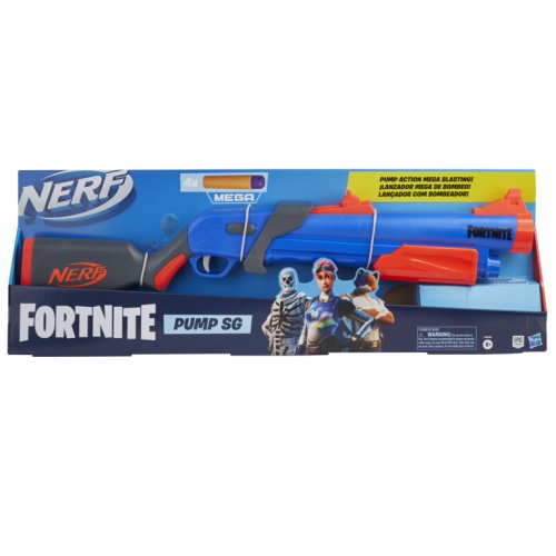 Bláster Nerf Fortnite Pump SG je inšpirovaný blastrom z populárnej videohry Fortnite. Nabite posunom predpažbia, zatiahnutím za rukoväť otvoríte záver na boku blástra a vložte do blástra 1 šípku Nerf Mega. Zatvorte záver zatlačením na rukoväť a vystreľte obrovskú šípku Nerf Mega po protivníkovi. Balenie obsahuje 4 šípky Nerf Mega. Vek 8+