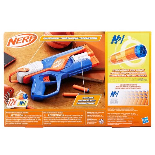 Výkonný blaster navrhnutý pre obratnosť! Otočný zásobník pojme 6 šípok súčasne, a jeho napnutie prebieha ťahom za úchop. Súčasťou sú 12 šípok