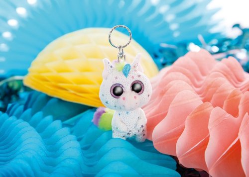 Jednorožec Uberto je skvelý farebný priateľ, ktorý je pokrytý trblietavými hviezdičkami. Biely plyš a ružové trblietavé oči z neho robia skvelého spoločníka, ktorý vám vždy vykúzli úsmev na tvári. Výška: 9 cm Vek: 3+