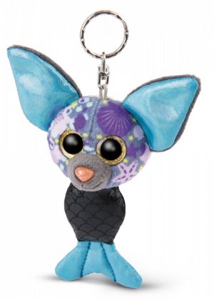 GLUBSCHIS Netopier z edície Mermaid je absolútne očarujúce. Modrá a čierna trblietavá látka a veľké zlaté trblietavé oči robia z prívesku na kľúče v štýle netopierej morskej panny niečo veľmi špeciálne.