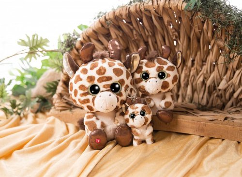 Žirafa Halla má hnedé škvrny, ako sa na pravú žirafu pristane. Ako je pre GLUBSCHI typické, má veľké trblietavé oči a na hlave očarujúce chumáč hnedých vlasov. Ako kľúčenka vás Halla môže sprevádzať všade. Výška: 9cm Vek: 3+