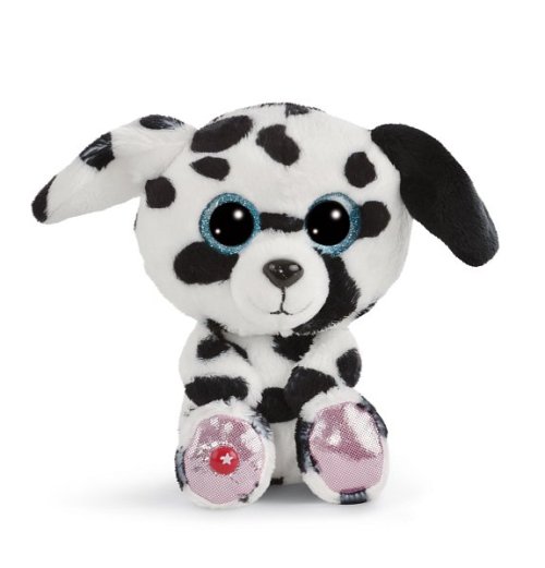 Glubschis Plyšový Dalmatín Dottino 15 cm vás okúzli svojim hebkým kožúškom v bielej farbe s čiernymi bodkami, modrými trblietavými očami a lesklými prvkami na jeho malých chodidlách. V kolekcii GREEN od Nici sa takmer výhradne používajú plyšové a výplňové materiály vyrobené z recyklovaných materiálov. Výška: 15 cm. Rozmer hračky: 15 x 12 x 9 cm. Rozmer balenia: 18 x 16 x 11 cm. Vek 0+