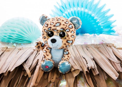 Plyšový Leopard Lassi z kolekcie GLUBSCHIS vás zaujme so svojou béžovo modrou bodkovanou srsťou.