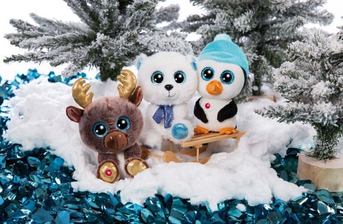 Sobík GLUBSCHI je veľmi špeciálna. Sobík Cocoa-Fee má dvojfarebnú hnedú srsť a zlatými parožou. Jasne modré trblietavé oči sú čerešničkou na torte! Rozmery: 15cm. vek: 0+