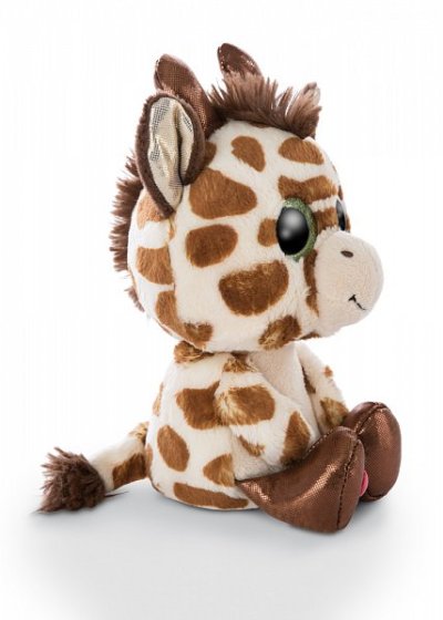Žirafa GLUBSCHIS Halla má hnedé škvrny, ako sa na pravú žirafu pristane. Ako je pre GLUBSCHI typické, má veľké trblietavé oči a na hlave očarujúce chumáč hnedých vlasov. Jej roztomilé ušká sú lemované trblietavou látkou a jej nohy sa trblietajú červenou hviezdou NICI. Výška: 15cm Vek: 0+