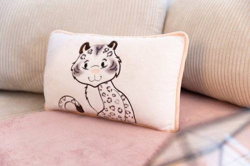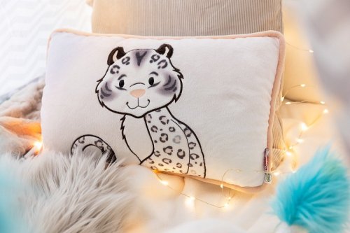 Obdĺžnikový plyšový vankúš v bielo-šedom odtieni z kolekcie Wild Winter je skutočne krásnym dekoratívnym doplnkom. Zaujme vás svojou vysokou kvalitou, ale aj jedinečným dizajnom. Prednú stranu vankúša zdobí elegantný snežný leopard Eleni Snowbell v podobe kvalitnej plyšovej aplikácie, zatiaľ čo zadná strana je opatrená štýlovým leopardím vzorom. Precízne spracované lemovanie elegantne dotvára celkový vzhľad a dodáva vankúšu výnimočný vzhľad. Vankúš je mäkký a nadýchaný a nabáda na relaxáciu a maznanie. Očarujúce darček pre malých aj veľkých. Vankúš je súčasťou sveta produktov NICI GREEN. Pre produkty NICI GREEN sa používa takmer výhradne plyš a výplňový materiál vyrobený z recyklovaných materiálov. Na tento účel sa na RPET spracovávajú prevažne recyklované PET fľaše. Rozmer vankúša: 25 x 43 x 12 cm. Vek: 0+