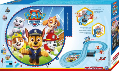 Autodráha Carrera FIRST dlhá 2,4m s autami zo seriálu Tlapková patrola, pre deti od 3 rokov, na batérie, obsahuje rovinky, zákruty, točiace vrtule, ovládače a dekorácie s tématikou Paw Patrol. Dĺžka trate: 2,4m Rozmery po zostavení: 93 x 45cm Rozmery balenia 50 x 30 x 7 cm. Vhodné pre deti od 3 rokov.