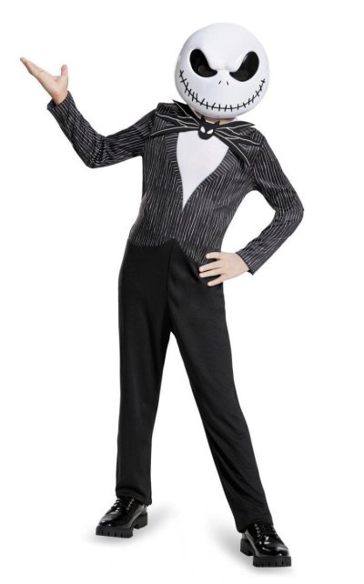 Detský kostým strašidelnej postavy Jacka Skellingtona obsahuje overal, motýlika a masku. Veľkosť na 10 - 12 rokov.