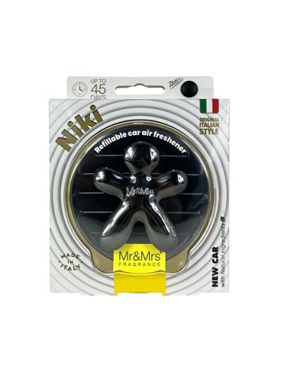 Originálna autovôňa v tvare panáčika s novým 3D vzorom prináša kvetinovú vôňu v elegantnom dizajne "Titanium Chrome". Dvojdielne prevedenie umožňuje jednoduchú výmenu náplne a zaisťuje optimálne prúdenie vzduchu vo ventilácii. Vôňa kombinuje tóny pomaranča, jablka a šafranu s kvetinovým srdcom a zmyselným drevitým základom, pričom vydrží až 45 dní. Vyrobené z netoxickej gumy EVA a ABS plastu, design pochádza od L. Trazziho a nesie certifikácia IFRA a FSC.