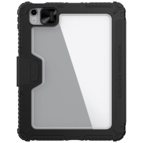 Nillkin Bumper Pre ochranné puzdro s praktickým flipom, ktorý slúži zároveň ako stojan je vyrobené z vybraného materiálu TPU a PC. Šošovka fotoaparátu je chránená posuvným krytom Zaisťuje dokonalú ochranu a funkčnosť. Zosilnené rohy perfektne ochránia hrany tabletu. Flip krytu je z PU kože. Unikátny skladací kryt zobrazuje iPad vo všetkých zvolených uhloch na písanie, čítanie a prezeranie webu. Zloženie krytu je veľmi jednoduché. Vstavaná zostava magnetov podporuje funkcie iPad pre automatické prebudenie / spánok. V puzdre nájdete priestor pre vašu Apple ceruzku.