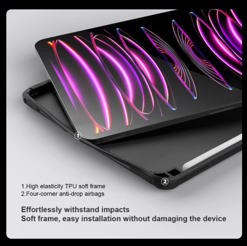 CamShield Pad zadný kryt je multifunkčný kryt navrhnutý pre tablety, ktorý spája štýl, ochranu a praktické funkcie do jedného. Kryt je vyrobený z kombinácie odolných materiálov TPU a PC, ktoré zaisťujú vynikajúcu ochranu proti pádu, poškriabaniu, nárazom i ohýbaniu. Má aj posuvný kryt fotoaparátu, ktorý vám ochráni šošovky pred poškriabaním a nežiaducim prachom. Výklopný stojan vám umožní pohodlné sledovanie obrazovky pod rôznymi uhlami, čo oceníte pri práci, zábave alebo videohovoroch. Vďaka magnetickej funkcii je možné ľahko pripevniť k ďalším magnetickým povrchom alebo príslušenstvu, čo prináša maximálnu flexibilitu pri používaní. Kryt má tiež vyhradený slot na stylus, ktorý vám zaistí, že ho budete mať vždy po ruke a môžete okamžite zaznamenať každý moment inšpirácie. Detaily ako mierne zvýšené okraje proti poškriabaniu displeja, postranné protišmykové pruhy pre lepší úchop a citlivé, presné tlačidlá robia z tohto krytu ideálnu ochranu pre váš tablet, pripravenú zvládnuť každú situáciu.