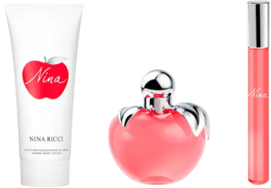 Nina Ricci přináší kouzelnou dámskou vůni Nina, která ztělesňuje francouzský luxus, šarm a smyslnou něžnost. Tato květinově-ovocná kompozice promění každodenní realitu v pohádkový zážitek, plný emocí a elegance. Flakon dokonale odráží filozofii značky Nina Ricci – je to nádherný designový klenot, který potěší při každém doteku. Ve tvaru svůdného jablka, kterému nelze odolat, září křišťálově čistým malinově-červeným odstínem, doplněným o stříbrné lístky s gravírovaným logem ikonického parfumářského domu. Vůně Nina byla uvedena na trh v roce 2006 a od té doby okouzluje ženy svou smyslností a jemnou rafinovaností. Součástí sady je:
