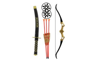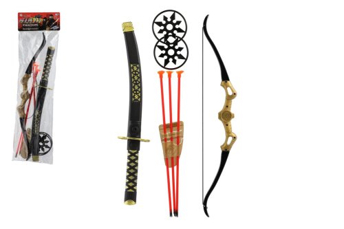 Ninja sada meč s doplnkami plast hviezdice 2ks, lúk + šípy na prísavku