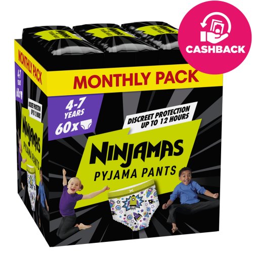 Plienkové nohavičky Ninjamas absorbujú vďaka technológii Instant Absorption okamžite vlhkosť pre doposiaľ nevidenú účinnú ochranu. Vďaka pohodlnému pásu FormFit sa prispôsobujú telu dieťaťa, aby boli diskrétne a pohodlne padli ako spodnú bielizeň. Deti sa tak môžu každý deň prebúdzať so skvelým pocitom.