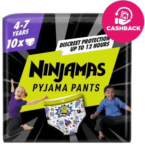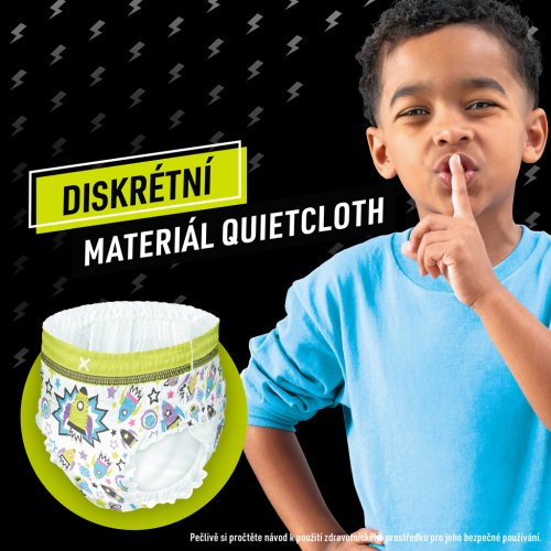 Plienkové nohavičky Ninjamas absorbujú vďaka technológii Instant Absorption okamžite vlhkosť pre doposiaľ nevidenú účinnú ochranu. Vďaka pohodlnému pásu FormFit sa prispôsobujú telu dieťaťa, aby boli diskrétne a pohodlne padli ako spodnú bielizeň. Deti sa tak môžu každý deň prebúdzať so skvelým pocitom.