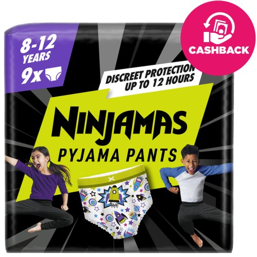 Plienkové nohavičky Ninjamas absorbujú vďaka technológii Instant Absorption okamžite vlhkosť pre doposiaľ nevidenú účinnú ochranu. Vďaka pohodlnému pásu FormFit sa prispôsobujú telu dieťaťa, aby boli diskrétne a pohodlne padli ako spodnú bielizeň. Deti sa tak môžu každý deň prebúdzať so skvelým pocitom.