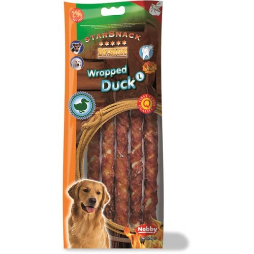 Táto maškrta je vyrobená z kvalitných prísad, bez umelých farbív alebo dochucovadiel a obsahuje 2% tuku. Váš pes touto formou hry uspokojí svoje hryzacie vášne a zároveň posilňuje čeľustné svalstvo. Maškrty pomáhajú starať sa o zuby psom tým, že dochádza drhnutiu povrchu zubov. Intenzívne hryzenie a žuvanie tiež uspokojuje prirodzenú potrebu psov niečo hrýzť a pomáha udržiavať svieži dych. Zloženie: 34,8% hovädzej kože, 59,5% kačacie mäso. Analytické zložky: proteín 88%, obsah tuku 2%, vláknina 1%, popol 2,5%, vlhkosť 18%. Krmivo podávajte ako odmenu alebo kedykoľvek ako súčasť vyváženej stravy. Uchovávajte v suchu a chlade. Vždy zaistite dostatok čerstvej vody. Nie je určené pre ľudskú spotrebu.