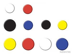 Flat-topped magnets v baleniach z 10. Use to attach diagrams, poznámky or messages to magnetické desky a easels. Rozmanité balenie kontajnerov 2 každého z červených, čiernych, modrej, bielej a žltej.