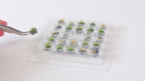 Trávne trsy dodávajú scenériám mimoriadne prirodzený vzhľad v kombinácii rôznych trávnych vlákien, kamienkov, posypu a vločiek. Vďaka tomu vznikajú špeciálne varianty vhodné aj na náročnejšie použitie. Trsy sú ideálne pre tvorbu krajiny na modelových železniciach, ale skvele sa hodia aj pre modelárov, ktorí skrášľujú podstavce alebo malé scénické prvky. Variant suchá tráva je obzvlášť vhodná pre letné lúky, lesný podrast, okraje ciest alebo mierne zvlnené terény. Jednotlivé trsy je možné ľahko prilepiť bežným lepidlom na tvorbu krajiny. Pokiaľ sa majú zapracovať do väčšej trávnatej plochy, je možné ich usadiť priamo do podkladu natretého lepidlom na trávu. Následným zasypaním posypom, vločkami a trávnymi vláknami vznikne súvislá a prirodzene pôsobiaca zelená plocha. Hlavné vlastnosti: jedná sa o model, nejedná sa o hračku vhodné od 14 rokov pre merítka H0, TT, N, Z, 0, 1, Grezano laseremsada 25 ks