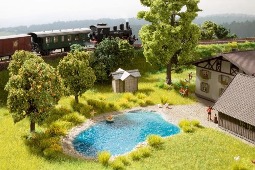Sada farieb pre vodné plochy obsahuje päť starostlivo zladených odtieňov, pripravených na použitie, ktoré sú ideálne pre realistické stvárnenie rôznych typov vodných scenérií. V balení sa nachádza päť základných farieb po 30 ml - tmavo modrá, ultramarínová, tyrkysová, kalne hnedá a biela. Vďaka praktickému kvapkátku na fľaštičkách je možné farby presne dávkovať a ľahko dosiahnuť požadovaný odtieň, či už ide o horské jazero, lesný tôň, pobrežie alebo lagúnu. Farby sú vzájomne miešateľné s akrylovými farbami a dobre priľnú k povrchom, ako je drevo, sadra, kartón alebo tvrdá pena. Po zaschnutí majú matný, prirodzený vzhľad a odolávajú vysokým teplotám, čo umožňuje ich kombináciu s ďalšími modelárskymi materiálmi, napríklad s Water-Drops®. Balenie obsahuje: 5 ks farby po 30 ml pripravené na použitie v odtieňoch tmavo modrá, ultramarínová, tyrkysová, kalne hnedá a biela Varovanie: obsahuje 5-chlór-2-metyl-2H-izotiazol-3-ón a 2-metyl-2H-izotiazol-3-ón (3 1,2-benzisotiazol-3(2H)-on. Môže vyvolať alergické reakcie. Hlavné vlastnosti: jedná sa o model, nejedná sa o hračku vhodné od 14 rokov meradlo H0, TT, N, Z, 0, 1, G, H0m, H0e
