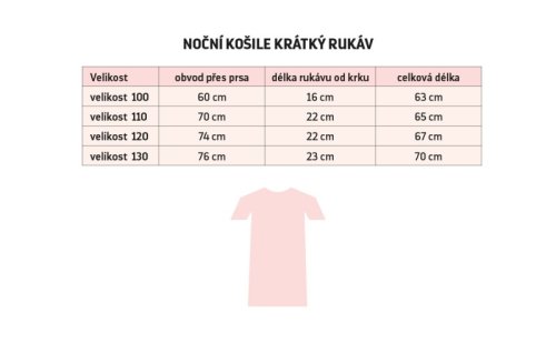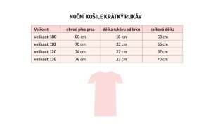 Nočná košeľa s krátkym rukávom materiál 95% Bavlna, 5% Elastan 180g/m2 pranie na 40 ° C šetrné odstreďovanie sušiť v sušičke neodporúčame žehliť do 110 ° C Nočná košeľa s krátkym rukávom pre našich najmenších.