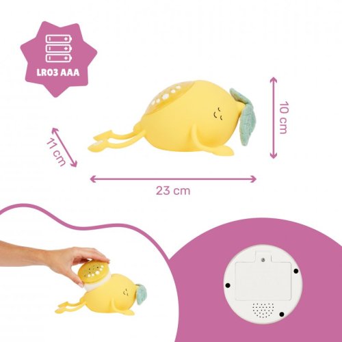Zoznámte sa s Basileom: nočným projektorom v tvare citrónu, ktorý sa stane novým najlepším priateľom dieťatka pred spaním alebo zdriemnutím.