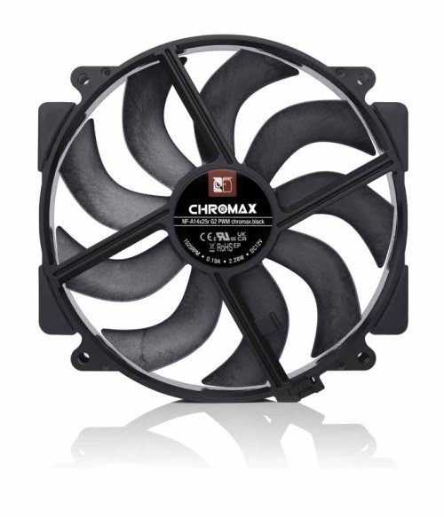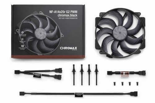 Noctua NF-A14x25 G2 PWM chromax.black je špičkový 140mm ventilátor do PC, navrhnutý pre maximálny výkon pri minimálnej hlučnosti. Vďaka pokročilej aerodynamike, extrémne malej medzere medzi lopatkami a rámom (0,7 mm) a kvalitnému materiálu Sterrox® LCP ponúka vynikajúci prietok vzduchu 155,6 m³/h, vysoký statický tlak 2,56 mm H2O a kultivovaný chod až do 1500 RPM. Ideálna voľba pre skrine, radiátory aj chladiče, kde záleží na efektivite aj tichu.