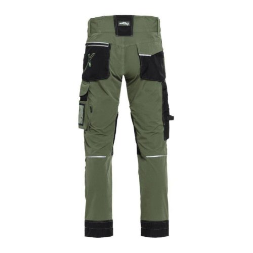 Profesionálne pracovné nohavice s moderným dizajnom, ktoré kombinujú odolnosť a maximálnu flexibilitu. Vďaka strečovému softshellovému materiálu a 4-smernému pružnému klinu v rozkroku poskytujú voľnosť pohybu aj pri náročnej práci. Nohavice majú zosilnené časti z materiálu CORDURA, vrátane kolenných vreciek na vložky, a sú vybavené množstvom funkčných vreciek. Trojité švy a kvalitné spracovanie zaručujú dlhú životnosť. Pre vyšší komfort nechýba ventilácia, elastický pás „stretch belt“ a možnosť predĺženia nohavíc o 4 cm. Reflexné prvky 3M Scotchlite zvyšujú bezpečnosť pri práci.