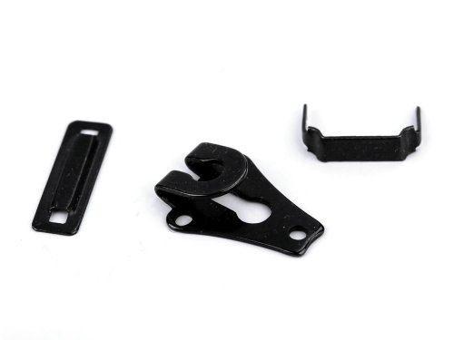Kovový háčik sa skladá z troch častí. Používa sa ako zapínanie pri odevných výrobkoch, napríklad pánskych a dámskych nohavíc alebo sukní. [Kov, z ktorého je háčik vyrobený, je prateľný.]