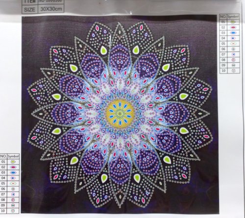 Balenie obsahuje: plátno s predtlačeným obrázkom, pero na aplikáciu kamienkov, misku na vysypanie kamienkov, vosk na nalepenie, sadu farebných kamienkov Diamantové maľovanie - postup: Horná strana plátna je potiahnutá lepidlom a prekrytá priehľadnou fóliou. Fóliu dávajte dole postupne po častiach tak, ako budete aplikovať kamienky. Pri sňatí celej fólie naraz sa môže lepiaca vrstva znečistiť a kamienky by nemuseli tak dobre držať. Plátno obsahuje znaky, ktoré sú uvedené v priloženej legende a odkazujú na príslušné vrecko s kamienkami označené číslom. Kamienky z daného vrecka vysypte do misky. Do hrotu pera naberte vosk, vďaka ktorému sa kamienky ľahko prichytia na pero. Kamienky perom nanášajte na obrázok. Po nalepení danej farby kamienky nasypte späť do vrecka a pokračujte s ďalšou farbou.