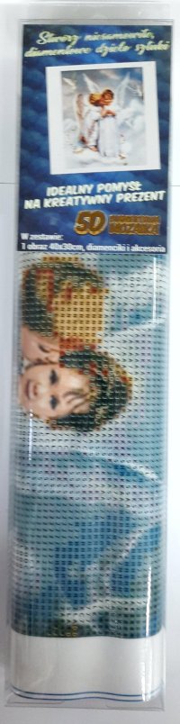 Balenie obsahuje: plátno s predtlačeným obrázkom, pero na aplikáciu kamienkov, misku na vysypanie kamienkov, vosk na nalepenie, sadu farebných kamienkov Diamantové maľovanie - postup: Horná strana plátna je potiahnutá lepidlom a prekrytá priehľadnou fóliou. Fóliu dávajte dole postupne po častiach tak, ako budete aplikovať kamienky. Pri sňatí celej fólie naraz sa môže lepiaca vrstva znečistiť a kamienky by nemuseli tak dobre držať. Plátno obsahuje znaky, ktoré sú uvedené v priloženej legende a odkazujú na príslušné vrecko s kamienkami označené číslom. Kamienky z daného vrecka vysypte do misky. Do hrotu pera naberte vosk, vďaka ktorému sa kamienky ľahko prichytia na pero. Kamienky perom nanášajte na obrázok. Po nalepení danej farby kamienky nasypte späť do vrecka a pokračujte s ďalšou farbou.