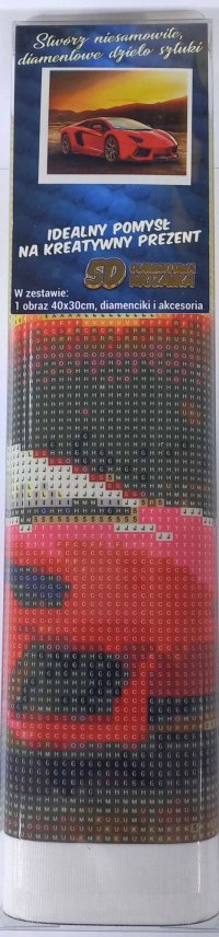 Balenie obsahuje: plátno s predtlačeným obrázkom, pero na aplikáciu kamienkov, misku na vysypanie kamienkov, vosk na nalepenie, sadu farebných kamienkov Diamantové maľovanie - postup: Horná strana plátna je potiahnutá lepidlom a prekrytá priehľadnou fóliou. Fóliu dávajte dole postupne po častiach tak, ako budete aplikovať kamienky. Pri sňatí celej fólie naraz sa môže lepiaca vrstva znečistiť a kamienky by nemuseli tak dobre držať. Plátno obsahuje znaky, ktoré sú uvedené v priloženej legende a odkazujú na príslušné vrecko s kamienkami označené číslom. Kamienky z daného vrecka vysypte do misky. Do hrotu pera naberte vosk, vďaka ktorému sa kamienky ľahko prichytia na pero. Kamienky perom nanášajte na obrázok. Po nalepení danej farby kamienky nasypte späť do vrecka a pokračujte s ďalšou farbou.