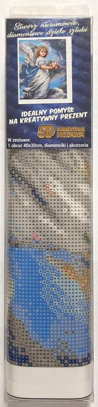 Balenie obsahuje: plátno s predtlačeným obrázkom, pero na aplikáciu kamienkov, misku na vysypanie kamienkov, vosk na nalepenie, sadu farebných kamienkov Diamantové maľovanie - postup: Horná strana plátna je potiahnutá lepidlom a prekrytá priehľadnou fóliou. Fóliu dávajte dole postupne po častiach tak, ako budete aplikovať kamienky. Pri sňatí celej fólie naraz sa môže lepiaca vrstva znečistiť a kamienky by nemuseli tak dobre držať. Plátno obsahuje znaky, ktoré sú uvedené v priloženej legende a odkazujú na príslušné vrecko s kamienkami označené číslom. Kamienky z daného vrecka vysypte do misky. Do hrotu pera naberte vosk, vďaka ktorému sa kamienky ľahko prichytia na pero. Kamienky perom nanášajte na obrázok. Po nalepení danej farby kamienky nasypte späť do vrecka a pokračujte s ďalšou farbou.