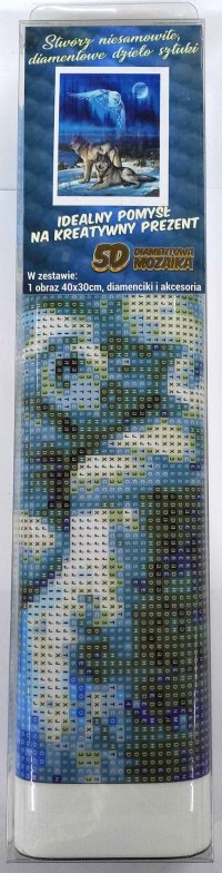 Balenie obsahuje: plátno s predtlačeným obrázkom, pero na aplikáciu kamienkov, misku na vysypanie kamienkov, vosk na nalepenie, sadu farebných kamienkov Diamantové maľovanie - postup: Horná strana plátna je potiahnutá lepidlom a prekrytá priehľadnou fóliou. Fóliu dávajte dole postupne po častiach tak, ako budete aplikovať kamienky. Pri sňatí celej fólie naraz sa môže lepiaca vrstva znečistiť a kamienky by nemuseli tak dobre držať. Plátno obsahuje znaky, ktoré sú uvedené v priloženej legende a odkazujú na príslušné vrecko s kamienkami označené číslom. Kamienky z daného vrecka vysypte do misky. Do hrotu pera naberte vosk, vďaka ktorému sa kamienky ľahko prichytia na pero. Kamienky perom nanášajte na obrázok. Po nalepení danej farby kamienky nasypte späť do vrecka a pokračujte s ďalšou farbou.