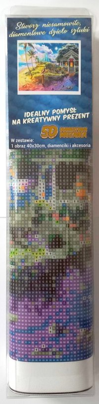 Balenie obsahuje: plátno s predtlačeným obrázkom, pero na aplikáciu kamienkov, misku na vysypanie kamienkov, vosk na nalepenie, sadu farebných kamienkov Diamantové maľovanie - postup: Horná strana plátna je potiahnutá lepidlom a prekrytá priehľadnou fóliou. Fóliu dávajte dole postupne po častiach tak, ako budete aplikovať kamienky. Pri sňatí celej fólie naraz sa môže lepiaca vrstva znečistiť a kamienky by nemuseli tak dobre držať. Plátno obsahuje znaky, ktoré sú uvedené v priloženej legende a odkazujú na príslušné vrecko s kamienkami označené číslom. Kamienky z daného vrecka vysypte do misky. Do hrotu pera naberte vosk, vďaka ktorému sa kamienky ľahko prichytia na pero. Kamienky perom nanášajte na obrázok. Po nalepení danej farby kamienky nasypte späť do vrecka a pokračujte s ďalšou farbou.
