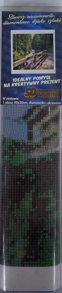 Balenie obsahuje: plátno s predtlačeným obrázkom, pero na aplikáciu kamienkov, misku na vysypanie kamienkov, vosk na nalepenie, sadu farebných kamienkov Diamantové maľovanie - postup: Horná strana plátna je potiahnutá lepidlom a prekrytá priehľadnou fóliou. Fóliu dávajte dole postupne po častiach tak, ako budete aplikovať kamienky. Pri sňatí celej fólie naraz sa môže lepiaca vrstva znečistiť a kamienky by nemuseli tak dobre držať. Plátno obsahuje znaky, ktoré sú uvedené v priloženej legende a odkazujú na príslušné vrecko s kamienkami označené číslom. Kamienky z daného vrecka vysypte do misky. Do hrotu pera naberte vosk, vďaka ktorému sa kamienky ľahko prichytia na pero. Kamienky perom nanášajte na obrázok. Po nalepení danej farby kamienky nasypte späť do vrecka a pokračujte s ďalšou farbou.