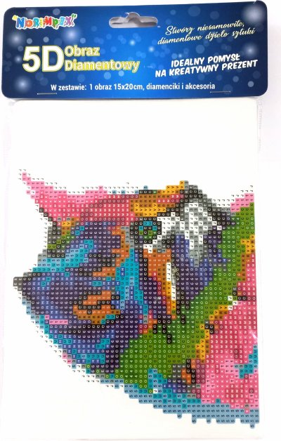 Súprava pre deti na vytvorenie diamantového obrázku. Časti obrázku sú označené symbolmi, číslami a písmenami. Na tieto označené miesta sa pomocou aplikačného pera umiestňujú drobné kamienky - diamanty.