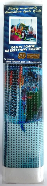 Balenie obsahuje: plátno s predtlačeným obrázkom, pero na aplikáciu kamienkov, misku na vysypanie kamienkov, vosk na nalepenie, sadu farebných kamienkov Diamantové maľovanie - postup: Horná strana plátna je potiahnutá lepidlom a prekrytá priehľadnou fóliou. Fóliu dávajte dole postupne po častiach tak, ako budete aplikovať kamienky. Pri sňatí celej fólie naraz sa môže lepiaca vrstva znečistiť a kamienky by nemuseli tak dobre držať. Plátno obsahuje znaky, ktoré sú uvedené v priloženej legende a odkazujú na príslušné vrecko s kamienkami označené číslom. Kamienky z daného vrecka vysypte do misky. Do hrotu pera naberte vosk, vďaka ktorému sa kamienky ľahko prichytia na pero. Kamienky perom nanášajte na obrázok. Po nalepení danej farby kamienky nasypte späť do vrecka a pokračujte s ďalšou farbou.