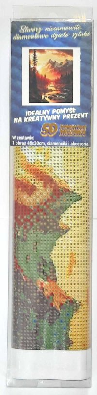 Balenie obsahuje: plátno s predtlačeným obrázkom, pero na aplikáciu kamienkov, misku na vysypanie kamienkov, vosk na nalepenie, sadu farebných kamienkov Diamantové maľovanie - postup: Horná strana plátna je potiahnutá lepidlom a prekrytá priehľadnou fóliou. Fóliu dávajte dole postupne po častiach tak, ako budete aplikovať kamienky. Pri sňatí celej fólie naraz sa môže lepiaca vrstva znečistiť a kamienky by nemuseli tak dobre držať. Plátno obsahuje znaky, ktoré sú uvedené v priloženej legende a odkazujú na príslušné vrecko s kamienkami označené číslom. Kamienky z daného vrecka vysypte do misky. Do hrotu pera naberte vosk, vďaka ktorému sa kamienky ľahko prichytia na pero. Kamienky perom nanášajte na obrázok. Po nalepení danej farby kamienky nasypte späť do vrecka a pokračujte s ďalšou farbou.