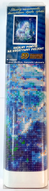 Balenie obsahuje: plátno s predtlačeným obrázkom, pero na aplikáciu kamienkov, misku na vysypanie kamienkov, vosk na nalepenie, sadu farebných kamienkov Diamantové maľovanie - postup: Horná strana plátna je potiahnutá lepidlom a prekrytá priehľadnou fóliou. Fóliu dávajte dole postupne po častiach tak, ako budete aplikovať kamienky. Pri sňatí celej fólie naraz sa môže lepiaca vrstva znečistiť a kamienky by nemuseli tak dobre držať. Plátno obsahuje znaky, ktoré sú uvedené v priloženej legende a odkazujú na príslušné vrecko s kamienkami označené číslom. Kamienky z daného vrecka vysypte do misky. Do hrotu pera naberte vosk, vďaka ktorému sa kamienky ľahko prichytia na pero. Kamienky perom nanášajte na obrázok. Po nalepení danej farby kamienky nasypte späť do vrecka a pokračujte s ďalšou farbou.