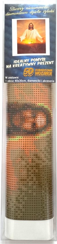 Balenie obsahuje: plátno s predtlačeným obrázkom, pero na aplikáciu kamienkov, misku na vysypanie kamienkov, vosk na nalepenie, sadu farebných kamienkov Diamantové maľovanie - postup: Horná strana plátna je potiahnutá lepidlom a prekrytá priehľadnou fóliou. Fóliu dávajte dole postupne po častiach tak, ako budete aplikovať kamienky. Pri sňatí celej fólie naraz sa môže lepiaca vrstva znečistiť a kamienky by nemuseli tak dobre držať. Plátno obsahuje znaky, ktoré sú uvedené v priloženej legende a odkazujú na príslušné vrecko s kamienkami označené číslom. Kamienky z daného vrecka vysypte do misky. Do hrotu pera naberte vosk, vďaka ktorému sa kamienky ľahko prichytia na pero. Kamienky perom nanášajte na obrázok. Po nalepení danej farby kamienky nasypte späť do vrecka a pokračujte s ďalšou farbou.