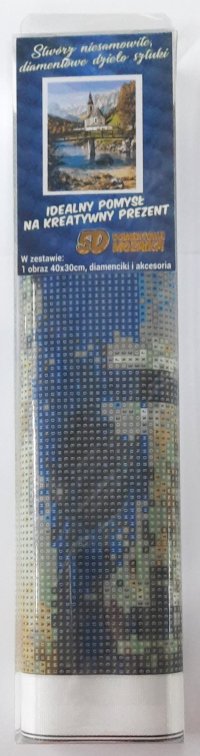 Balenie obsahuje: plátno s predtlačeným obrázkom, pero na aplikáciu kamienkov, misku na vysypanie kamienkov, vosk na nalepenie, sadu farebných kamienkov Diamantové maľovanie - postup: Horná strana plátna je potiahnutá lepidlom a prekrytá priehľadnou fóliou. Fóliu dávajte dole postupne po častiach tak, ako budete aplikovať kamienky. Pri sňatí celej fólie naraz sa môže lepiaca vrstva znečistiť a kamienky by nemuseli tak dobre držať. Plátno obsahuje znaky, ktoré sú uvedené v priloženej legende a odkazujú na príslušné vrecko s kamienkami označené číslom. Kamienky z daného vrecka vysypte do misky. Do hrotu pera naberte vosk, vďaka ktorému sa kamienky ľahko prichytia na pero. Kamienky perom nanášajte na obrázok. Po nalepení danej farby kamienky nasypte späť do vrecka a pokračujte s ďalšou farbou.