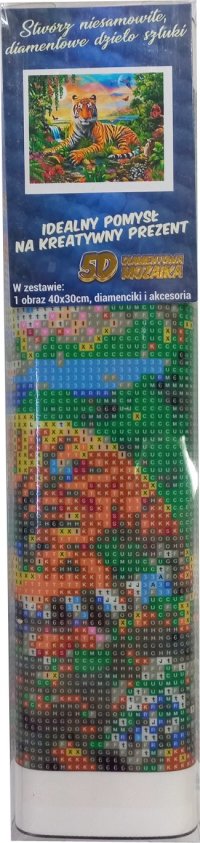 Balenie obsahuje: plátno s predtlačeným obrázkom, pero na aplikáciu kamienkov, misku na vysypanie kamienkov, vosk na nalepenie, sadu farebných kamienkov Diamantové maľovanie - postup: Horná strana plátna je potiahnutá lepidlom a prekrytá priehľadnou fóliou. Fóliu dávajte dole postupne po častiach tak, ako budete aplikovať kamienky. Pri sňatí celej fólie naraz sa môže lepiaca vrstva znečistiť a kamienky by nemuseli tak dobre držať. Plátno obsahuje znaky, ktoré sú uvedené v priloženej legende a odkazujú na príslušné vrecko s kamienkami označené číslom. Kamienky z daného vrecka vysypte do misky. Do hrotu pera naberte vosk, vďaka ktorému sa kamienky ľahko prichytia na pero. Kamienky perom nanášajte na obrázok. Po nalepení danej farby kamienky nasypte späť do vrecka a pokračujte s ďalšou farbou.